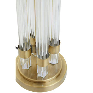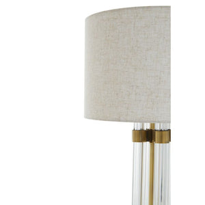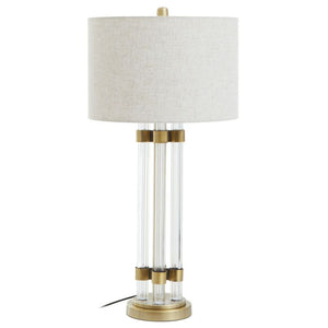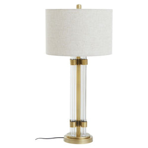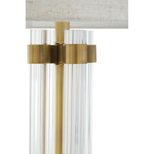 Well-suited for traditional abodes, this table lamp boasts elegance with its contemporary design. The fusion of ivory shade, clear glass column and gold finish round base creates a sophisticated ambiance.