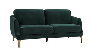 - Details: Sofa upholstered in forest green fabric fitted with wooden feet.