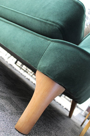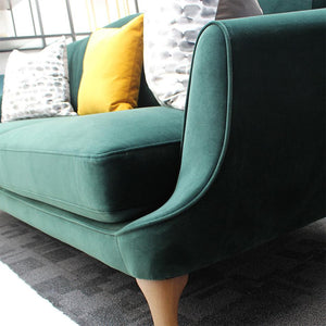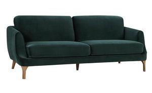• Details: Sofa upholstered in forest green fabric fitted with wooden feet.