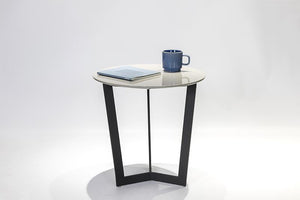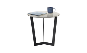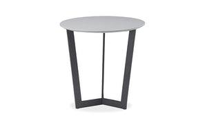 - Details: Side table with high gloss grey top, and metal base with charcoal powder coating.