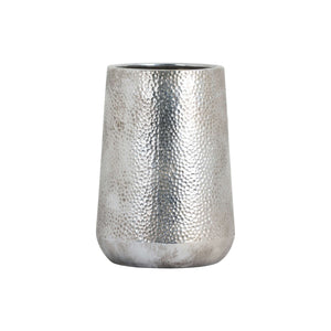 Made in ceramic with a wide neck and finished with a mottled pewter effect ensures this piece is very on trend and would suit any interior while the metallic look brings a contemporary feel and the dimple finish makes this a unique item.