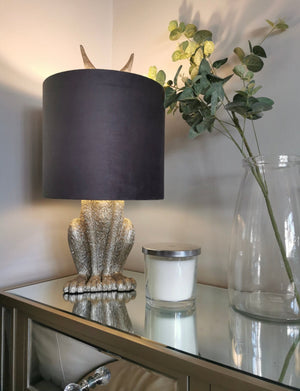 This the Silver Hare Table Lamp With Grey Velvet Shade. A resin lamp catering perfectly to the growing demand for quirky statement lamps.