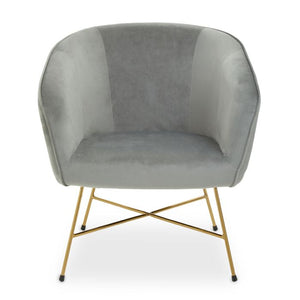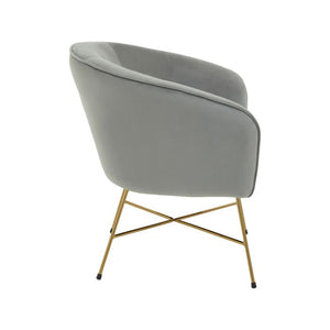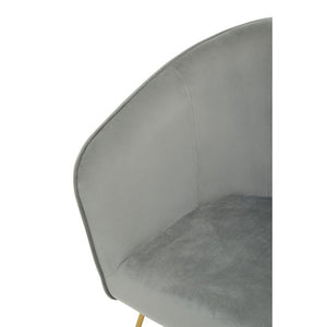 This chair in sumptuous grey velvet upholstery adds character to an array of home office space. The ergonomic armrests and foam padded seat of this chair provides comfort, and the gold finish angular metal base adds stability to the frame.
