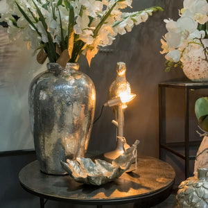 This metallic vase is sure to be an attention grabber wherever it is placed within an interior.