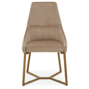 This chair will elevate sophistication with an elegant padded seat and back covered in mink velvet. The gentle tufting on the back accentuates the rich hues of the velvet and the gold finish sledge base lends the chair glam appeal.