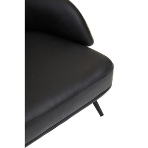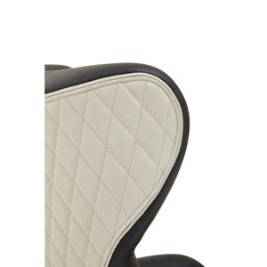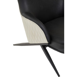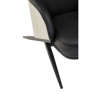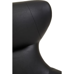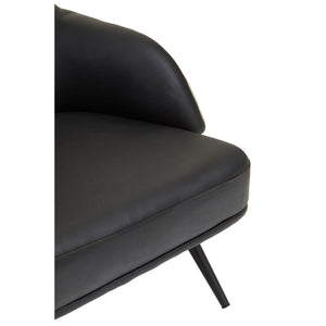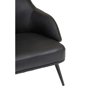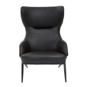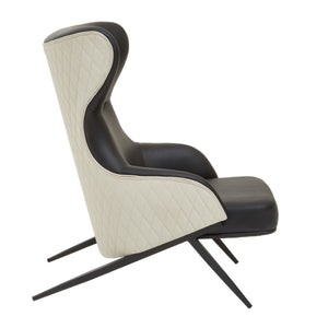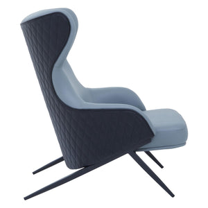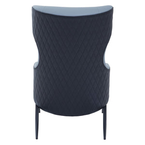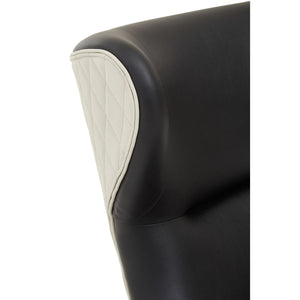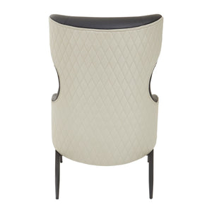 The Kiev wing-back chair features a curved backseat and armrests with a padded seat. The black and grey seats of this armchair is supported by tapered legs made from sturdy metal in black finish.