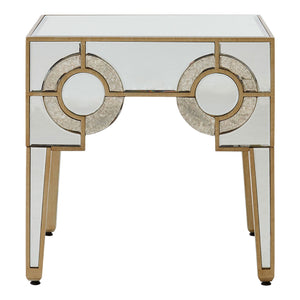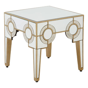 Inspired by the glamour of art deco design, the luxurious side table is formed from panels of mirrored glass.