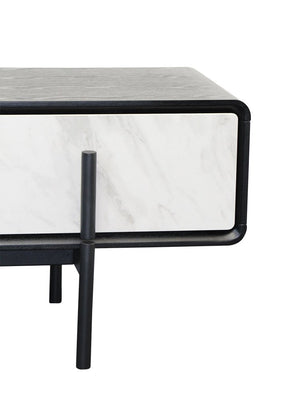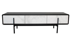 - Details: TV Unit in MDF and black ash veneer, front in ceramic with white carrara marble effect, metal legs with black powder coating.