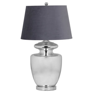 The elegant shape of this lamp teamed with the use of silver glass and metal ensures it is contemporary and on trend while the black shade adds an instant element of luxury to any space. E27 Screw Bulb.
