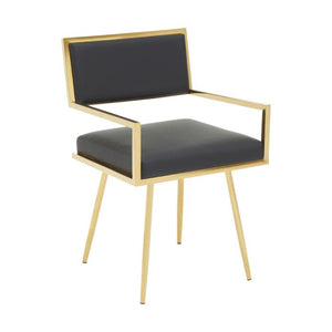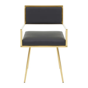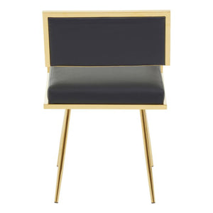 Azalea ivory and black leather effect dining chair with gold finish stainless steel frame.