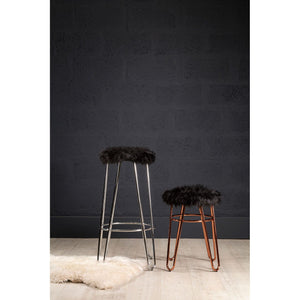 The District bar stool’s seat is upholstered with faux fur that has a soft and tactile feel.