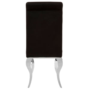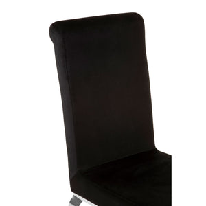 Dressed in tactile black velvet, the chair has a long back design for enhanced support and comfort. Its legs are made from smooth stainless steel.
