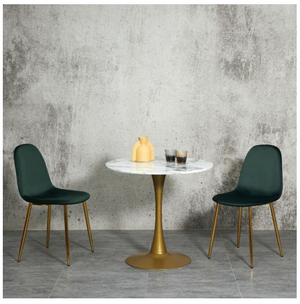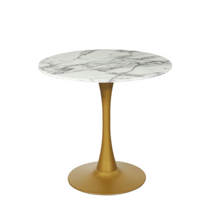 Mmilo Modern White Round Artificial Marble Dining Table with Gold base 80cm