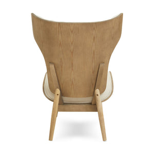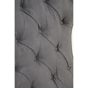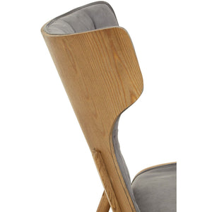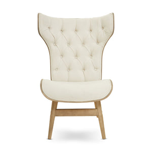 Upholstered in brown, beige, grey velvet, the Vince chair has a foam-filled undulating seat with winged back in gentle button tufting. Made from elm wood, angular legs with curved sides give the chair a mid-century modern aesthetic.