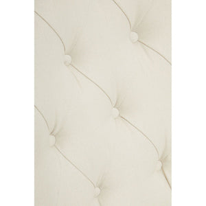 This chair has a modern design made up of curved lines and plush button tufted upholstery.