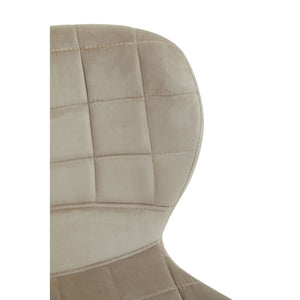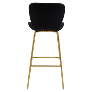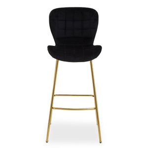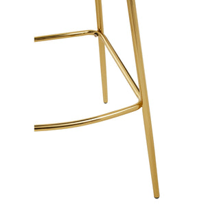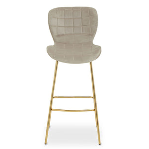This bar chair is upholstered in sumptuous mink and black velvet. The quilted seat and backrest of this chair are enhanced by fine stitching. The chair is complete with splayed gold finish legs and footrests, contributing to the clean aesthetic of the modern design.