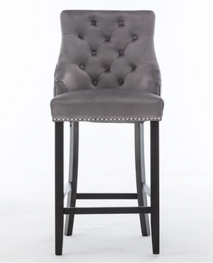 A welcome addition to any home the Nicholas bar stool is beautifully finished with a buttoned forward and in stunning silver velvet.