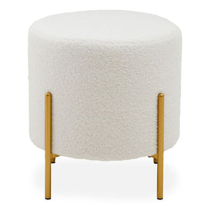 With plush white teddy upholstery, this stool features a clean design offering a warm and cosy feel with premium comfort. Sleek gold finish legs extend to hold the cylindrical seat and update a subtle statement.