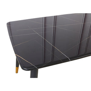 This beautiful piece is designed for any Modern styling dining rooms. Luxury Matte black metal with detailed golden legs are perfectly match with the glamour engineered Marble stone top.