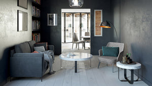 Uniquely designed with six loose cushions, the Aubyn's intricate geometrics are eyecatching and bold. Filled with sumptuous spongy foam, the dark grey velvet Aubyn serves as more than just a statement piece. Offset with delicate black metal feet for a touch of glamour.