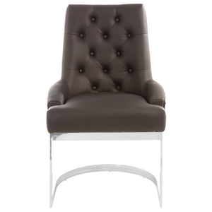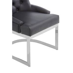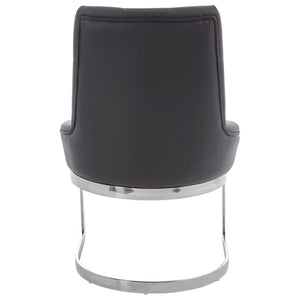 Upholstered in faux black leather, this chair has foam-padded seat and tapered backrest featuring button detail in a diamond pattern. Made from stainless steel, the classic U-shaped silver-finish base gives a touch of vintage glamour to this contemporary chair.
