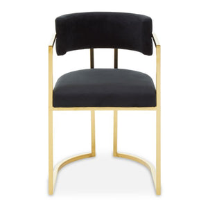 Azalea black velvet dining chair with gold finish stainless steel frame.