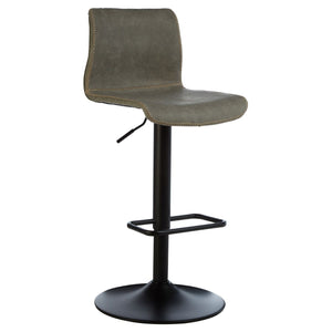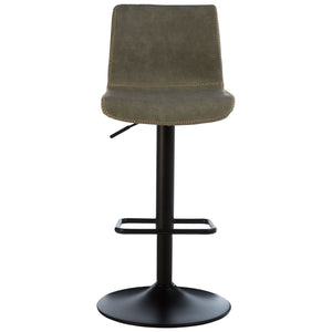 A contemporary, height-adjustable bar stool upholstered with supple faux leather.