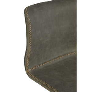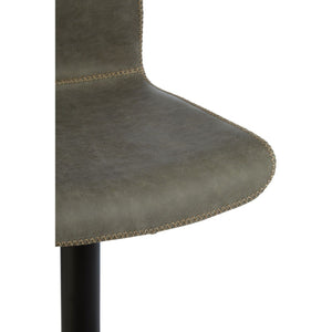 The Dalston bar stool has a base and stand made from smooth metal and a black powder coated finish. The faux leather has a vintage ash colour and features textured stitching at the sides. A square footrest is integrated into the design.