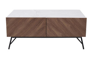 • Details: TV Unit with white ceramic top, walnut body & black leg.