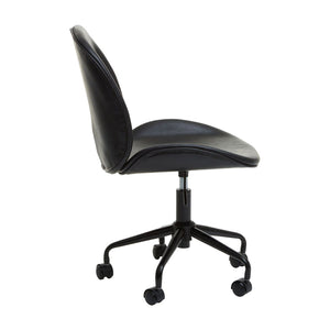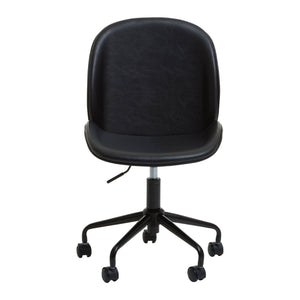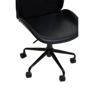 This home office chair offers style and comfort with the contoured seat and U-shaped back. The seat has a lever-operated pneumatic lift for height adjustment, and the five-point star base provides smooth mobility.