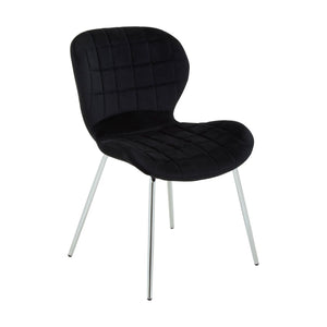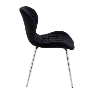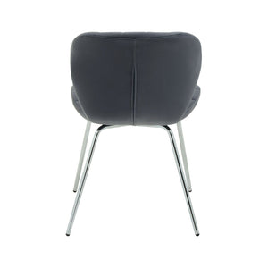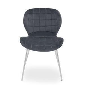 This dining chair is upholstered in sumptuous grey velvet. The quilted seat and backrest of this chair are enhanced by fine stitching. The chair is complete with splayed silver finish legs, contributing to the clean aesthetic of the modern design.